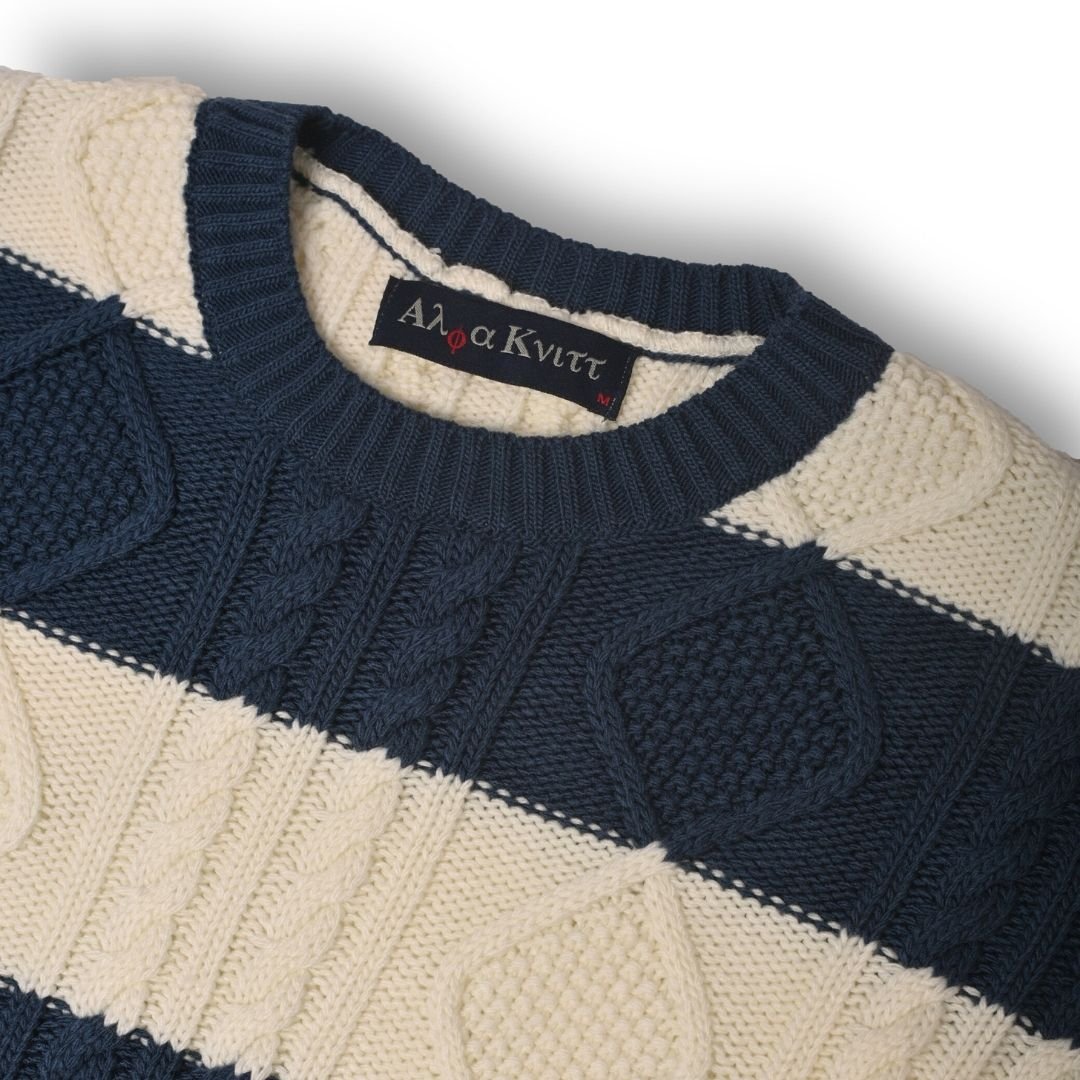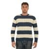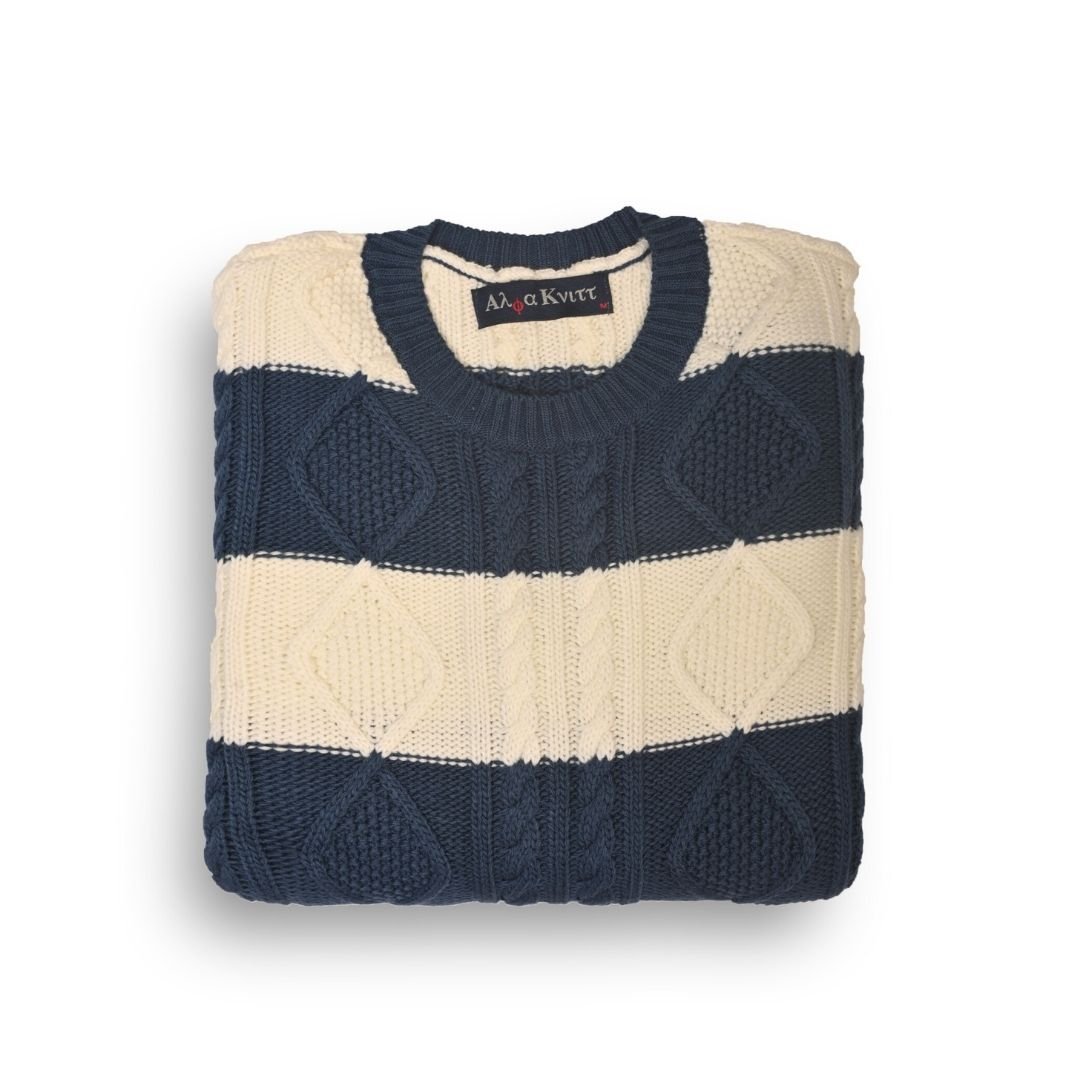 The Striped Cable Knit Sweater Collection blends classic design and cozy comfort. Each sweater features bold, horizontal stripes, making it a standout piece in any wardrobe.